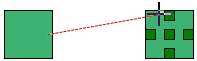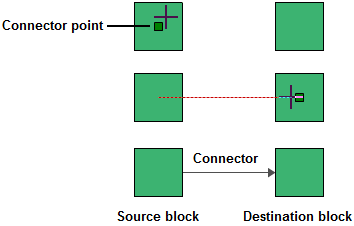 In both methods, the pointer will change to display small crosshairs. Click the source block, hold down the left mouse button and drag a line from the source block to the destination block. When the crosshairs are located over the connection point box, release the mouse button to create a connector.