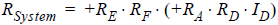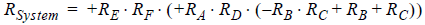 When this diagram is analyzed (without using identical block simplification), the symbolic reliability equation is: