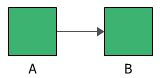 In this diagram, the two events are connected to an OR gate. If the output event is system failure and the two input events are component failures, then this fault tree indicates that the failure of A or B causes the system to fail. The RBD equivalent for this configuration is a simple series system with two blocks, as shown next.