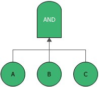The following figure uses an AND gate with three events, A, B and C. Note that analytically, this representation does not differ from the first figure.