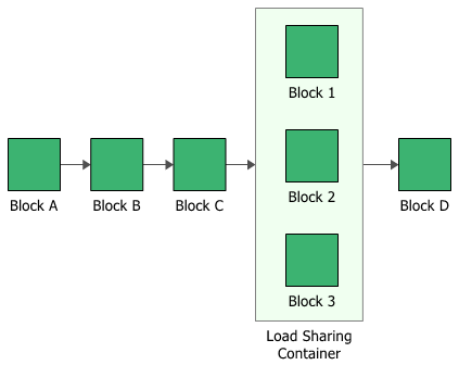 To configure a load sharing container, in addition to the common block properties, you will need to specify the Number of paths required, which is the number of active paths within the container that must succeed in order for the container to succeed. If the required number of paths does not succeed, then the container is considered to be failed. The contained blocks must be within the load sharing container, but they do not need to be connected to each other.