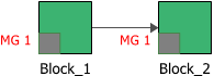 Tip: Blocks that belong to a mirror group have a square at the lower left corner of the block. You can change the size of the indicator and the appearance of the text via the relevant Block Corner Indicators page of the Diagram Style window. You can change the color used for each mirror group via the Mirror Group Manager.