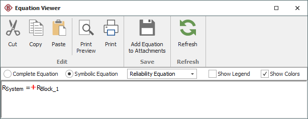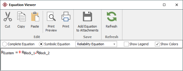If, however, the two blocks in the RBD belong to the same mirror group, they are actually a single block. The diagram and system reliability equation are shown next.