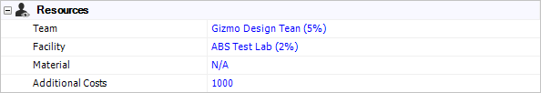 You can select from the teams, facilities and materials resources that have been predefined within the database (or create them on-the-fly if you have the required permissions). In a secure database, only users with the "Manage project planning resources and working days" permission will be able to create and edit these resources. (See Project Planning Resources.)