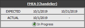 The next two rows show the expected dates and any actual dates, and the last row shows the status.
