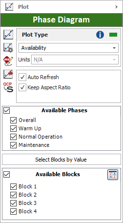 - Available Phases allows you to specify which phases to display on the plot. To select all phases, click the check box in the table header. To select individual phases, click the check box in each row.