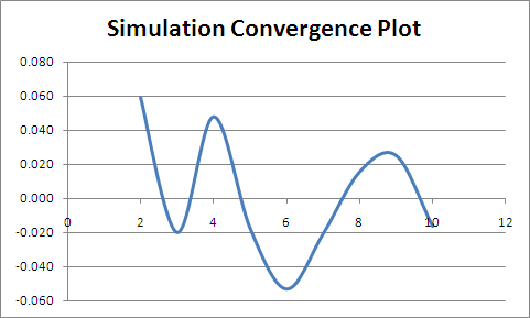 If you have selected Full Display in the Display Options drop-down, a plot will also be shown in the simulation status display. This plot shows, for each simulation, the difference between the previous mean availability and the current mean availability, as a percentage of the current mean availability. For example, consider the following table: