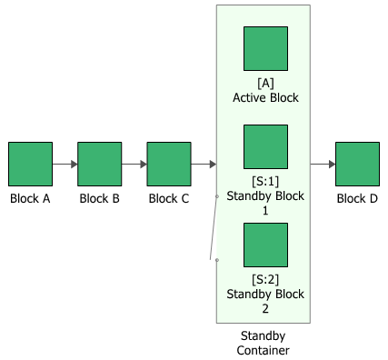 To configure a standby container, in addition to the common block properties, you will need to specify the Number of active paths required, which is the number of active paths within the container that must succeed in order for the container to succeed. If the required number of paths does not succeed, then the container is considered to be failed.