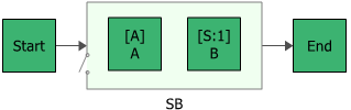 The next two figures show both the fault tree diagram and reliability block diagram representation of a system with two units, A and B, in a standby configuration where unit A is active and unit B is in a standby state.
