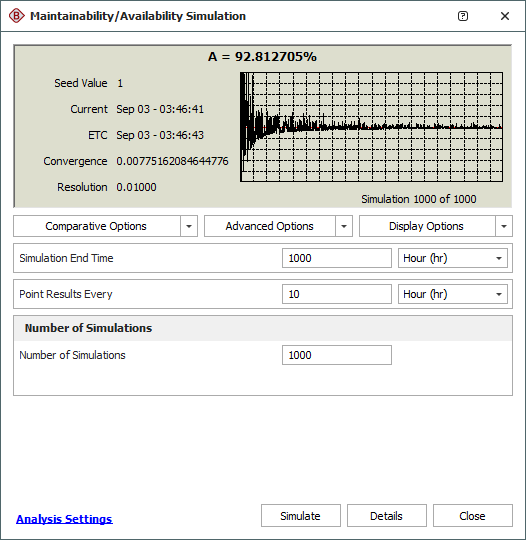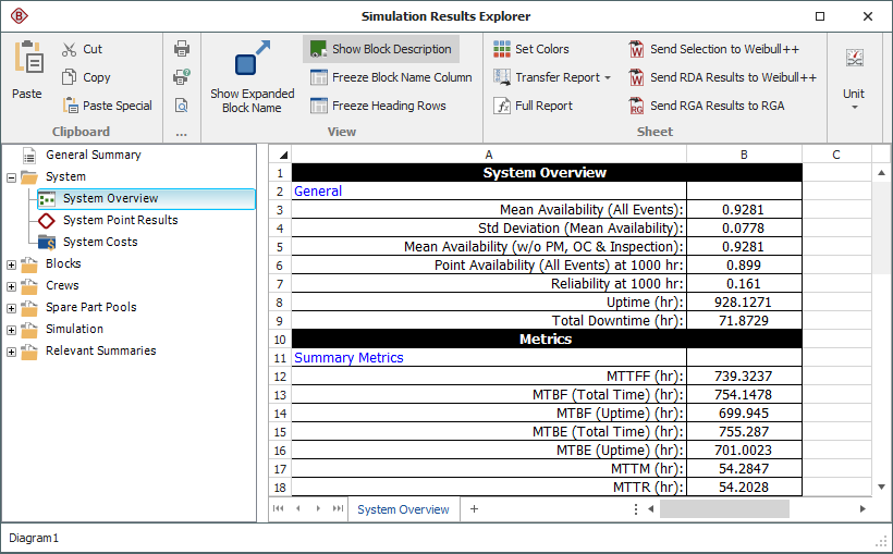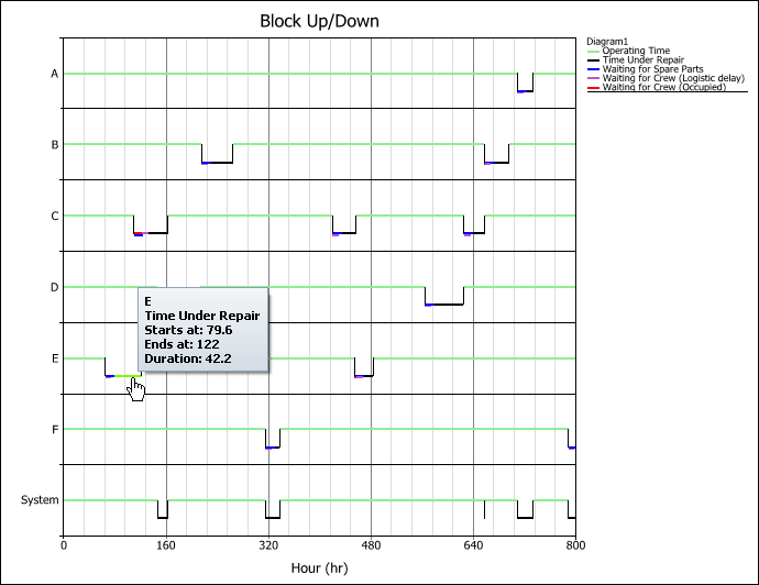 A reliability block diagram (RBD) is a graphical representation of how the components of a system are reliability-wise connected. BlockSim's RBDs can be configured as analytical diagrams (which use the exact algebraic equation for the system model but impose limitations on what can be modeled and what results can be obtained) or simulation diagrams (which provide more modeling options and results but must be analyzed with discrete event simulation).