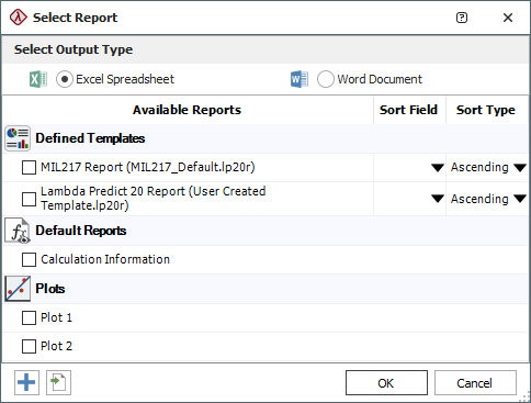 In Lambda Predict, you can create template-based reports that summarize the key results of your analyses. Each reliability prediction standard that is included in your license comes with a basic report template. If desired, you can customize the appearance of the basic report templates, as well as manage and build your own custom report templates. (See Creating and Editing Report Templates.)