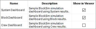 Use the check boxes in the Show in Viewer column to select which of the predefined layouts will be available to all database users via the Dashboard Viewer. If you clear a check box, the layout will not show in the viewer’s drop-down list but will remain in the manager’s list.