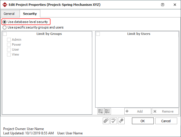 1. Project Security: Accept the default option on the Security tab of the Project Properties for all public and reference projects (Project > Security > Project Security). Note that if a user belongs to more than one security group (and the Allow access to projects with database-level security check box is selected for his/her user account), that user will have the combined permissions of those groups in any project that is set to database-level security.