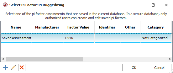 When you have used a saved pi factor assessment to set a property for a particular item in a FIDES analysis, the name will be displayed in brackets in the item properties.