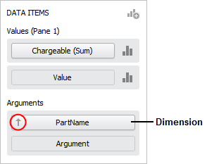 - Dimension, argument and/or series bars in the DATA ITEMS panel.