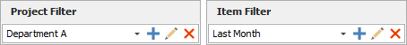 This window utilizes the same project and item filters that are available in many other locations throughout ReliaSoft desktop applications. For example, when searching for text for an item in the system hierarchy, you could use a Project Filter to search for analyses performed by Department A and then use an Item Filter to show only those analyses that were modified in the last month.