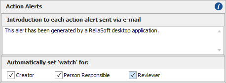 - Introduction to each action alert sent via e-mail. This field allows you to specify the default text that will be used at the beginning of each action alert e-mail sent from this database.