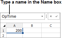 This method applies only to the spreadsheet module of ReliaSoft Workbooks. Select the cell or range of cells, click the Name box and type a name. Press Enter to create the name.