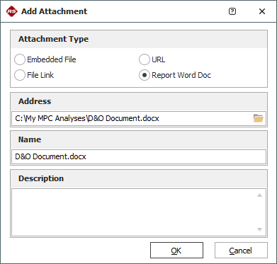 , then in the Add Attachment window, select Report Word Doc for the attachment type and browse for the file, as shown next.