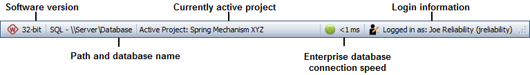 As an example, the following picture shows the status bar at the bottom of the MDI for an enterprise database: