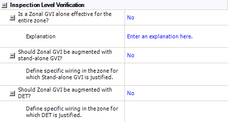 The second set of inputs allow the team to indicate which type of inspection tasks are recommended and why. In these questions, GVI = general visual inspection and DET = detailed inspection.