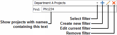 - The tree displays the projects that are available to be imported or exported. If desired, you can use the Filter and Find tools to limit the list of projects displayed. (See Project Manager.)