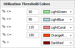 - The Utilization Threshold Colors apply only when using the Gantt chart to view team or facility utilization.