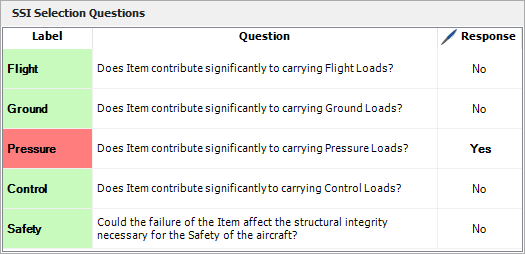 A structural item will be marked as an SSI if you answer "Yes" to any of the SSI selection questions displayed in the bottom panel of the Structural Item Properties tab.