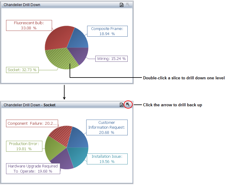 ) until you have reached the desired level or right-click the chart, then choose Drill Up.