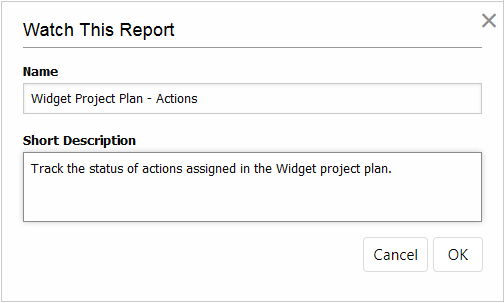 To watch a report, navigate to it in SEP and click the Watch button or link, and then enter the name and description that will appear in your personalized list of "My Reports."