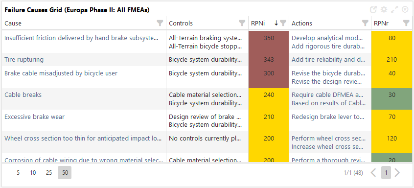 This tile allows you to view a prioritized list of potential failure causes, along with the controls and actions that will mitigate the risks associated with these causes.