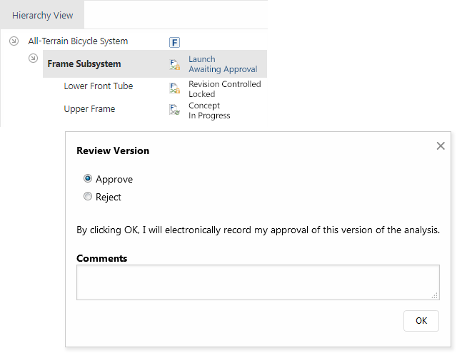 - Approved - the analysis is locked for editing and all of the assigned approvers have electronically recorded their approval.