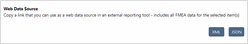 The FMEA web data source links to the fields, ratings and metrics that have been defined as part of the “interface style” for a project. (See Interface Styles in the XFMEA/RCM++ help.)