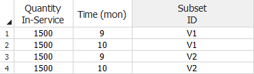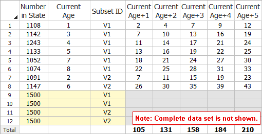 - On the control panel of the Forecast sheet, select the Show Subset ID check box. The following figure shows the results (showing only the first 8 columns).