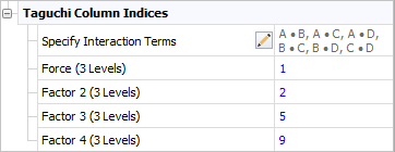These column assignments will be used to generate a design that does not alias any of the two-way interactions you entered in the Specify Interaction Terms window with any main effects.