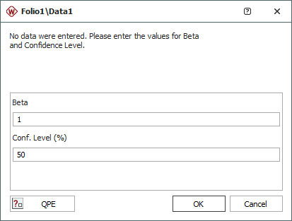 To use the 1-parameter Weibull distribution, you will be prompted to enter the shape parameter, beta, as well as the lower one-sided confidence for the scale parameter, eta.