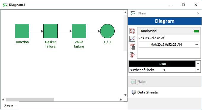 - Add blocks by choosing Diagram > Blocks > Add Block. You will be asked to select the data sheet of the failure mode that the block will represent.