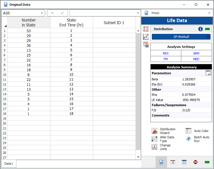 The data set used in this example is available in the example database installed with the Weibull++ software (called "Weibull26_Examples.rsgz26"). To access this database file, choose File > Help, click Open Examples Folder, then browse for the file in the Weibull sub-folder.
