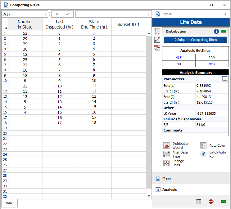 Starting in Version 2025, the Competing Risks Weibull model provides a way to analyze data sets where more than one failure mode must be considered for every data point.