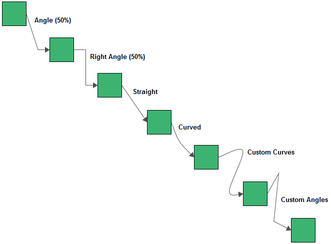 The available bend styles are shown next. For information on configuring curved and custom connectors, see Connecting Blocks.