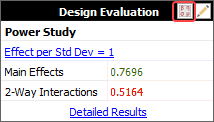 To see more details concerning the evaluation (including the powers calculated for individual effects of interest), click the Detailed Results link at the bottom of the area to view the Evaluation Results window.