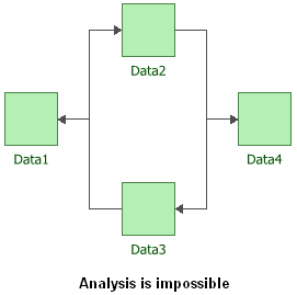 - Circular references, as shown below, are not allowed. There must be a clear path towards the end of the RBD and the RBD cannot loop back on itself.