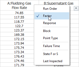The data set used in this example is available in the example database installed with the software (called "Weibull26_DOE_Examples.rsgz26"). To access this database file, choose File > Help, click Open Examples Folder, then browse for the file in the Weibull sub-folder.