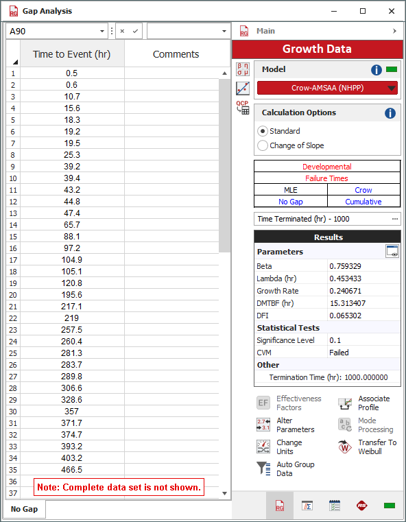 Gap analysis is used in situations where issues such as oversight, biases, human error, technical difficulties, etc. cause some portion of the data to be erroneous or completely missing. This causes the analysis to return distorted estimates of the growth rate and actual system reliability. In this type of situation, you can use the Gap Analysis feature in Weibull++ to analyze the data set.