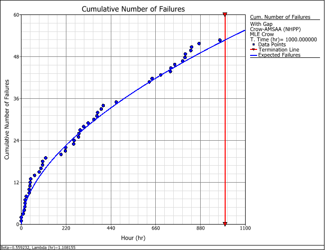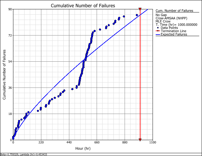 The Reliability Growth and Repairable System Analysis Reference provides more information about the analysis at https://help.reliasoft.com/reference/reliability_growth_and_repairable_system_analysis/rg_rsa/crow-amsaa_nhpp.html.