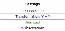 - No transformation is used (i.e., the "transformed" response, Y', is equal to the non-transformed response, Y). To configure this setting, you can click the text or the Select Transformation icon in the folio tools.