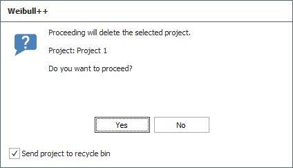If you want to move the project to the recycle bin, make sure the Send project to recycle bin check box is selected. If you want to immediately and permanently delete the project, clear the check box. Remember that once you empty or delete a particular project from the recycle bin, there will be no way to get it back unless you have previously created a backup or restore point.