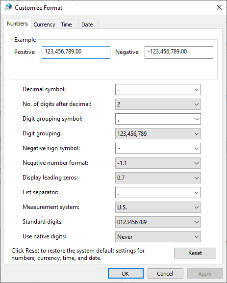 Changing the Decimal Symbol, the List Separator and the Currency Symbol