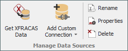 To create, delete, rename or edit the properties for these data sources, use the Manage Data Sources commands, or right-click inside the panel.