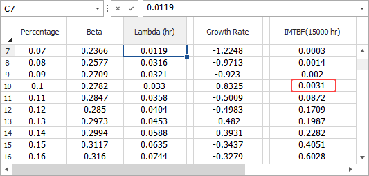 - Growth Rate is equal to 1 - beta. A larger growth rate means faster MTBF growth.